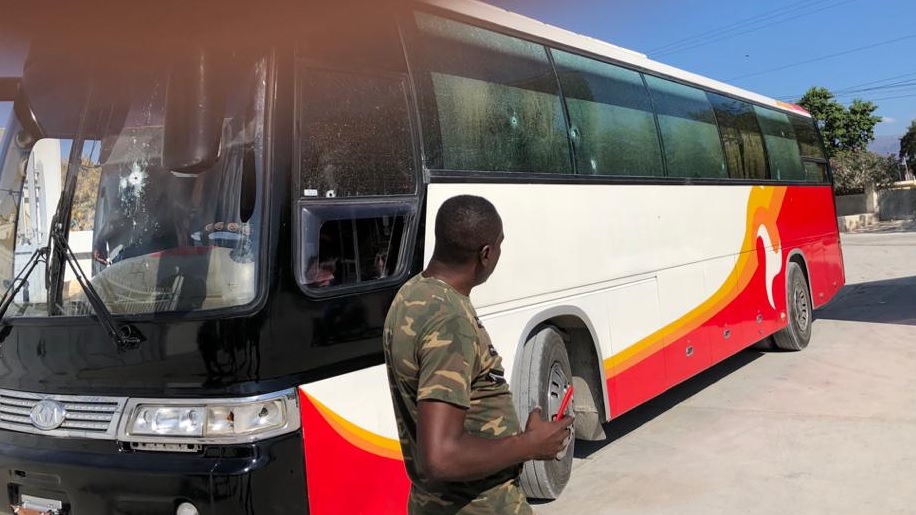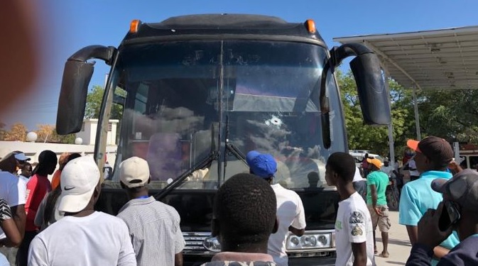 El vehíuculo fue interceptado en la localidad haitiana de Found Parisien por unos 15 hombres armados quienes bloquearon la carretera para que el autobús se detuviera, pero tras reducir la velocidad y mientras éstos se acercaban, él choferr Exequiel Tejada volvió a acelerar lgrando evadir el retén.