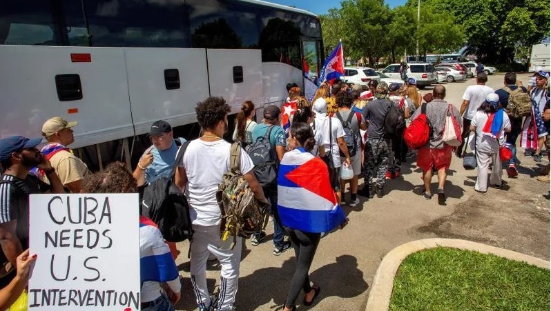 Con gritos de «Díaz-Canel asesino», «Viva Cuba libre» y «Abajo la dictadura», los cubanos partieron de un parque aledaño al Aeropuerto Internacional de Miami (MIA) rumbo a la capital estadounidense, donde se reunirán con compatriotas de varias ciudades del país.
