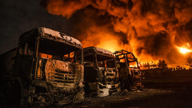 En Teherán se avistaron un gran incendio y explosiones sucesivas que destruyeron vehículos de transporte de combustible y tanques de almacenamiento, además de un espeso humo negro que siguió levantándose sobre la capital el domingo.