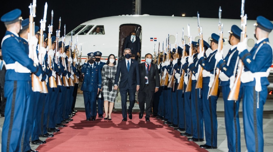 El Jefe del Estado llegó por el Aeropuerto Internacional Arturo Merino Benítez, acompañado del canciller dominicano Roberto Álvarez. Fue recibido con los honores correspondientes.