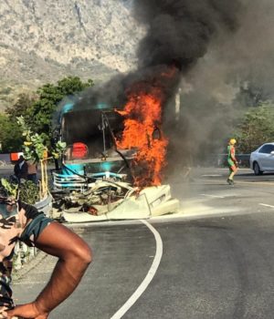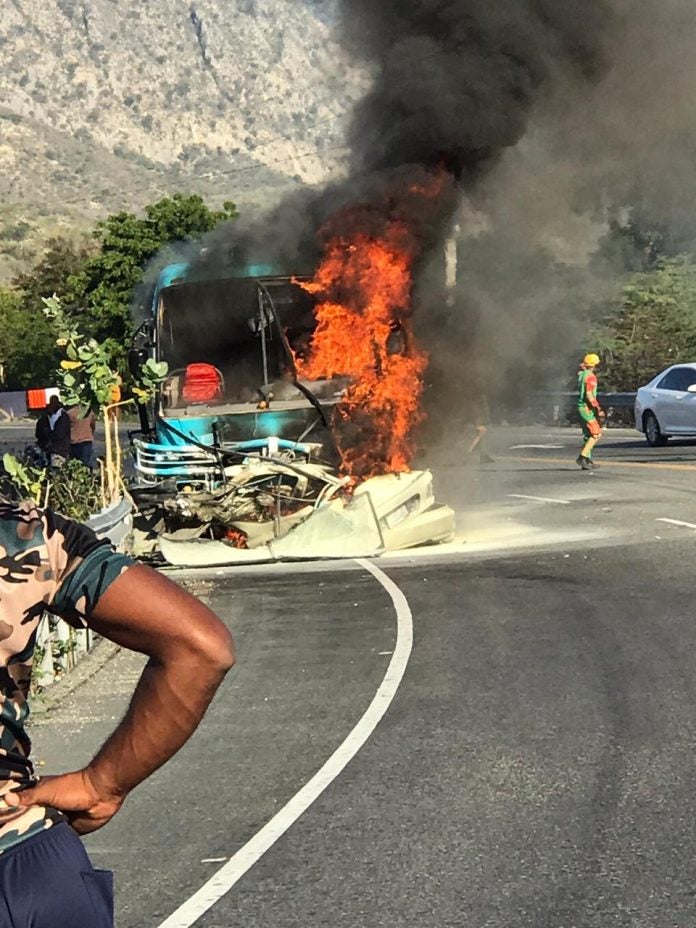El accidente se produjo entre un autobús del transporte público y un carro en la bajada del número en Azua.