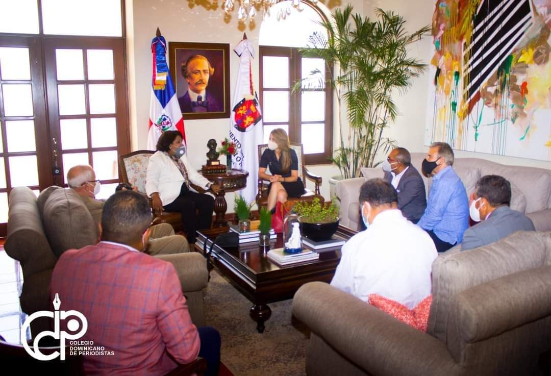 Carolina Mejía, alcaldesa de Santo Domingo de Guzmán, capital de la República Dominicana, recibe la directiva del Colegio Dominicano de Periodistas ( CDP) en su despacho del Palacio Consistorial ( Conde con Meriño).