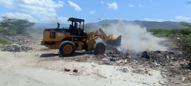 Los Ríos, Bahoruco. – La alcaldía del municipio, intervino con equipos amarillos el vertedero municipal, con fines de reacomodar los desechos sólidos y ampliar el mismo para crear más espacio, para poder hacer más vertidos y aprovechar el espacio disponible para tales fines.