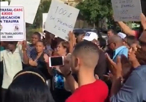 SANTO DOMINGO.- Decenas de empleados del Instituto Dominicano de Soguro Social (IDSS) protestaron la mañana de este martes en la sede principal de esa institución en reclamo de que el Gobierno los pensione.