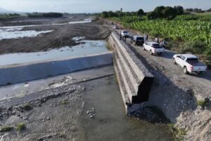 Caba Romano, señaló que está obra, también va en beneficio de más de 10 mil tareas sembradas de productos agrícolas de Azua, las cuales resultaban afectadas por las crecidas del río.