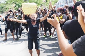 En la avenida Duarte con Ovando, las manifestantes hicieron allí una parada que género en un taponamiento, por lo que la Policía tuvo que intervenir para despejar la vía. A las mujeres se les prometió llevarlas ante el comandante la zona para que le plantearan la situación.