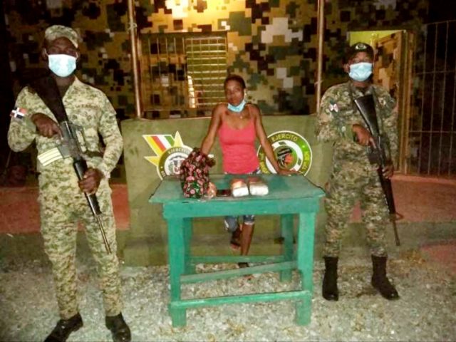 AZUA: Miembros del S-2 y del Ejército de la República Dominicana (ERD) que prestan servicio en el chequeo del 15 de Azua, apresaron una mujer con presunta marihuana.