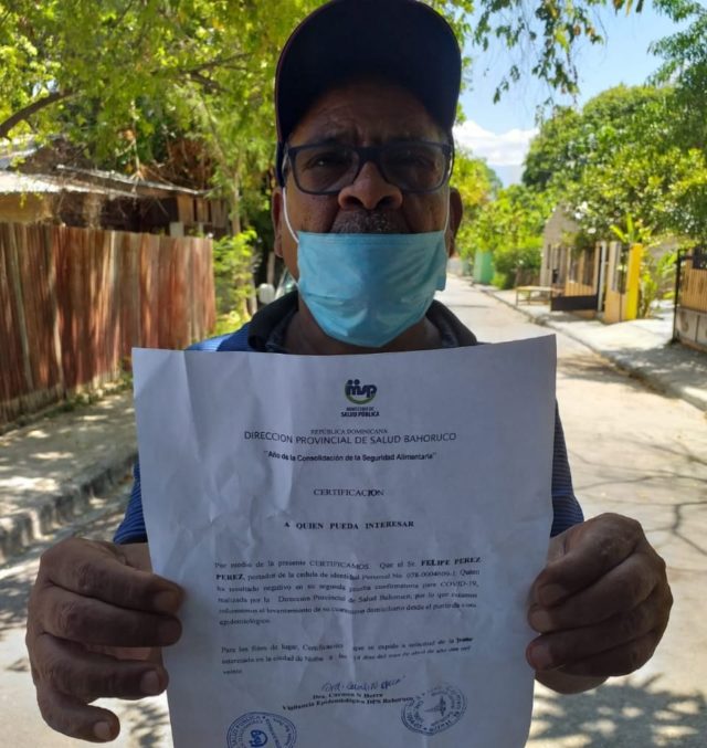 “Él (Felipe Pérez) no se hizo la prueba, la prueba se la hicimos nosotros; una prueba control, a él, que era caso”, respondió el funcionario, tras asegurar que Bahoruco volvía a estar libre de Coronavirus.