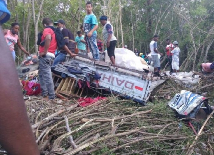 El accidente se produjo cuando un camión marca Daihatsu, blanco, trasnportaba extranjeros que se dirigían desde Polo a Cabral tras haber concluido las labores de venta de mercancías en la primera comunidad, sufrir una volcadura en las inmediaciones del Polo Magnético.