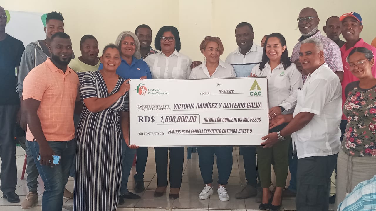 BATEY CINCO: El Consorcio Azucarero Central, hizo entrega de un cheque por la suma de RD$ 1, 5000, 000,00 (Un millón quinientos mil pesos) al Consejo para el Desarrollo de Batey Cinco, los cuales serán destinados a una jornada de embellecimiento de la comunidad.