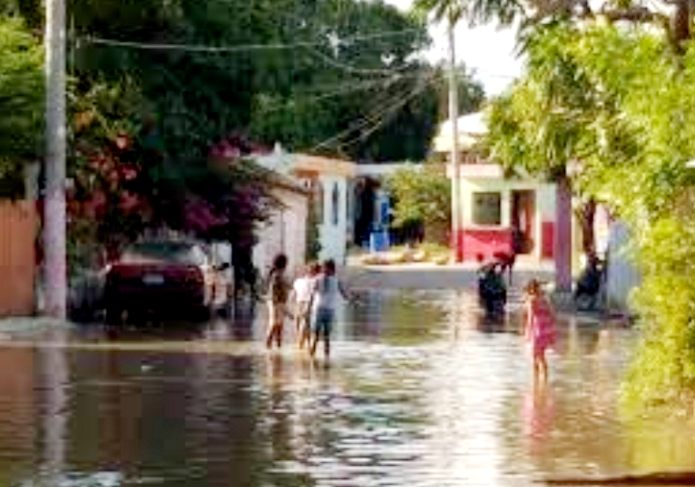 La calle Rafael Reyes del sector Calle 7 del municipio de Tamayo, provincia Bahoruco, está anegada producto del desbordamiento de un canal que cruza por el lugar, lo que mantiene intranquilas y desesperadas a las personas que allí residen.