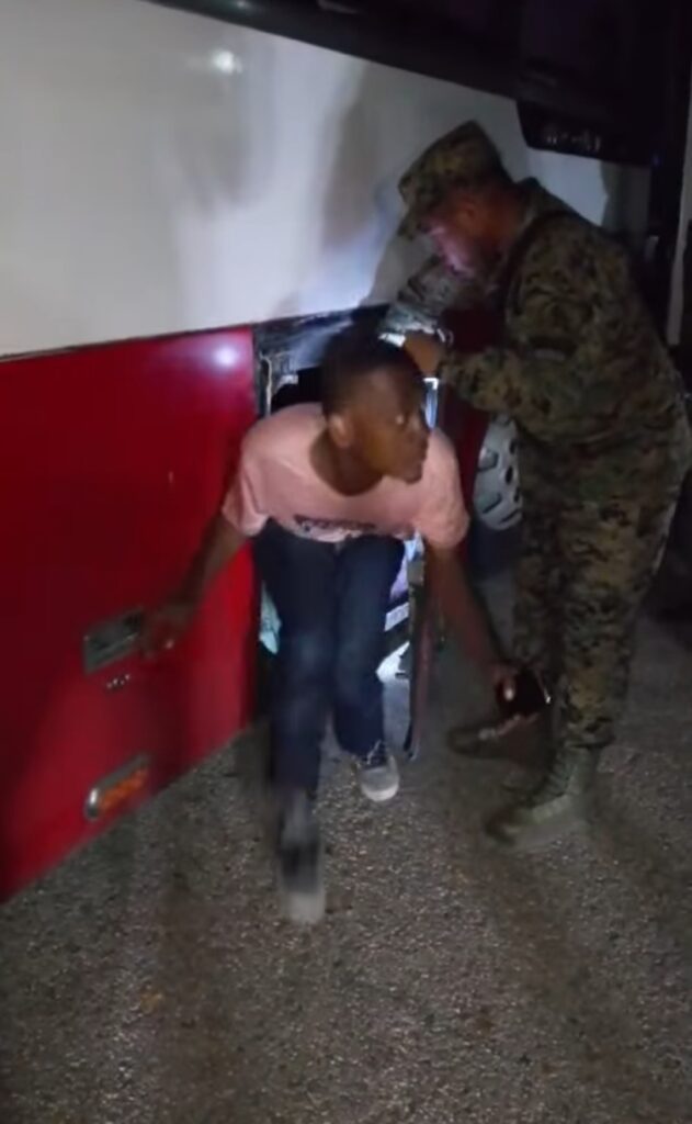 El conductor, identificado como Jenly Alberto Núñez Flores y el cobrador, Mateo Silvestre Severino, fueron puestos bajo custodia militar para ser enviados ante el Ministerio Público por tráfico de indocumentados.