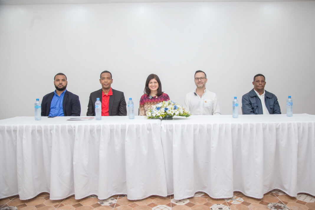 IMG_0139: Miguel Matos, gerente senior Internacional de Operaciones y Henry González, gerente senior de Desarrollo Internacional de Talentos de Major League Baseball; Lourdes Peguero, directora ejecutiva Fundación Central Barahona; José Antonio García, gerente Administrativo del CAC y Manuel Ferreras, director regional del Ministerio de Deportes en el país.