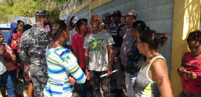 NEIBA.- Agentes policiales volvieron a la Escuela Pedro Mir del Manguito de aquí, atendiendo al llamado de la dirección que insiste en que los padres de los estudiantes depongan el rechazo al suplidor del almuerzo escolar por considerarlo de mala calidad y en cambio se pongan en funcionamiento la cocina del centro.