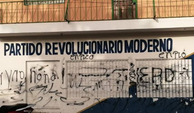 SAN JUAN: Miembros y simpatizantes del Partido Revolucionario Moderno (PRM) pintaron de negro parte del local municipal, en demanda de empleos para las bases.