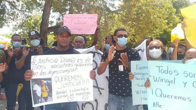 Neyba. Decenas de personas del Distrito Municipal de Canoa de Barahona, se manifestaron en el Palacio de Justicia de la Provincia Bahoruco, contra una garantía económica a favor del conductor de una yipeta que impactó una pasola matando a dos de sus tres ocupantes.