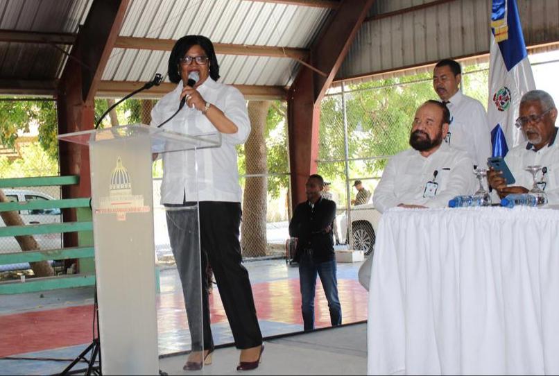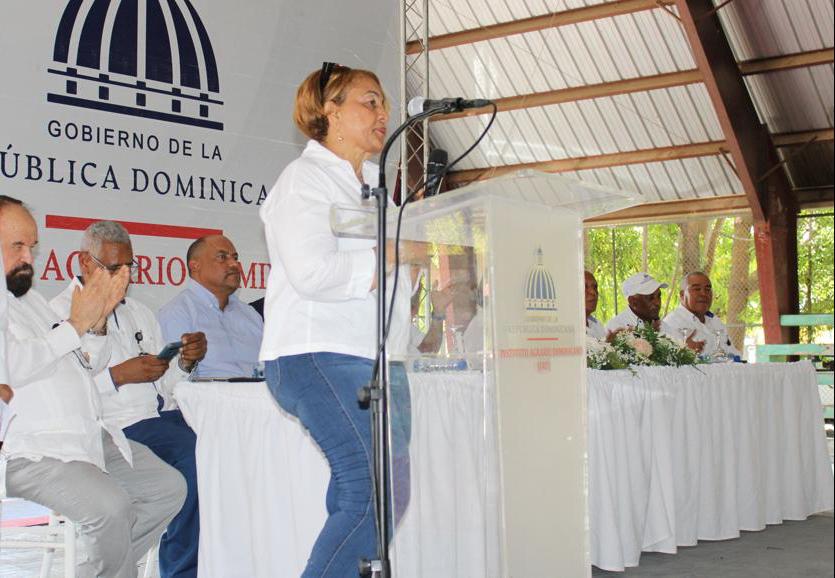El director general del Instituto Agrario Dominicano (IAD), Francisco Guillermo García, la Gobernadora Juana Cristina Mateo y la Senadora Melania Salvado, encabezaron este viernes la entrega de 237 títulos provisionales a parceleros en este municipio de esta provincia fronteriza.