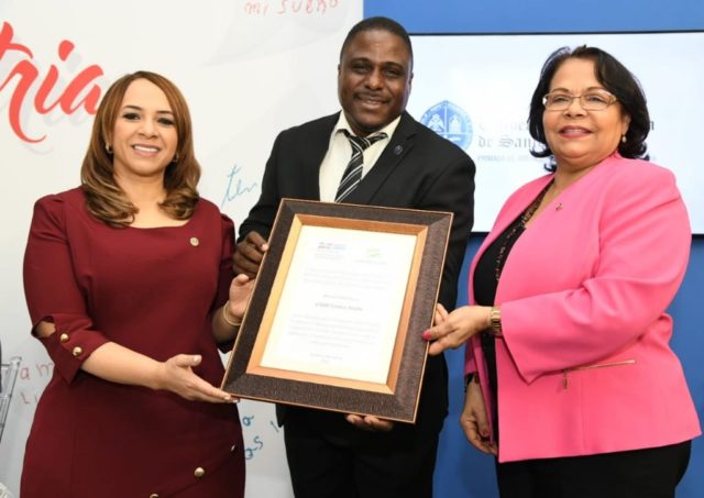 El reconocimiento, entregado en un acto realizado en la explanada del edificio Eugenio María de Hostos, en la Facultad de Ciencias de la Educación, fue recibido por la rectora de la UASD, Emma Polanco Melo y el encargado de la UASD-Neiba Franklin Soriano Castro.